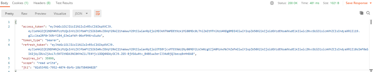 Response에 정상적으로 token 정보가 응답 오는 것을 확인 가능합니다.