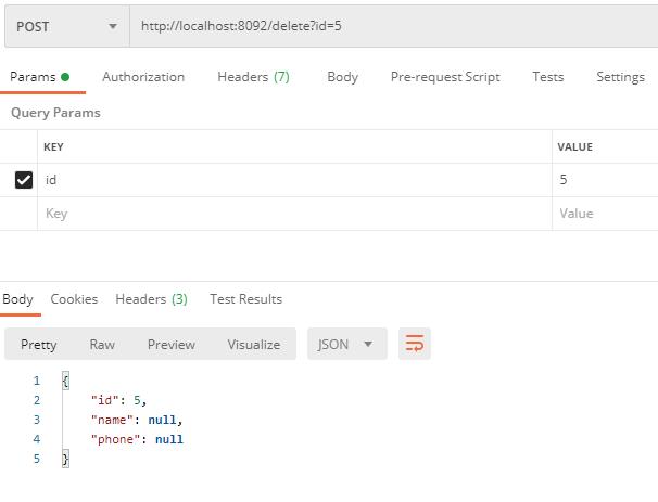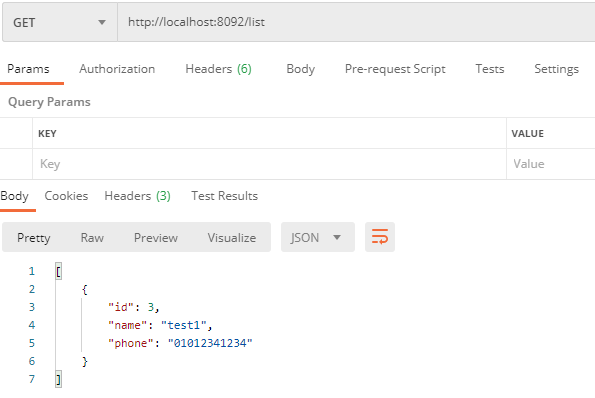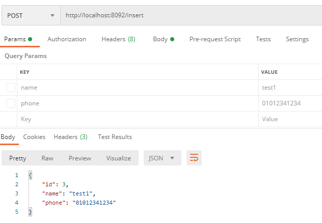 P.K 역할을 할 id, name, phone의 간단한 객체를 생성합니다.